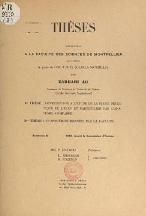 Contribution à l'étude de la flore désertique de l'Iran, en particulier par l'anatomie comparée